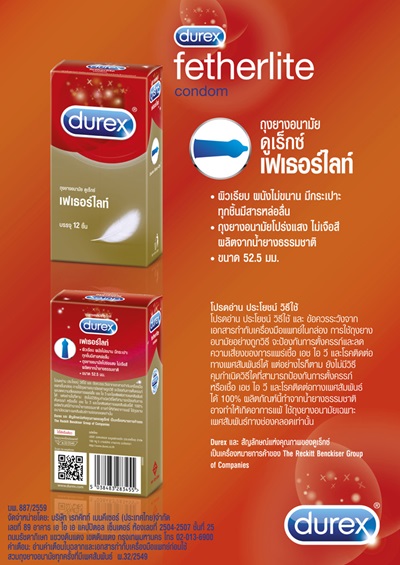 | ชื่อผลิตภัณฑ์: | ถุงยางอนามัย Durex Fetherlite Condom (ดูเร็กซ์ เฟเธอร์ไลท์) บรรจุ 12 ชิ้น |